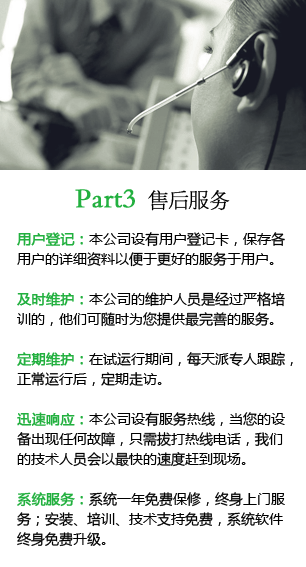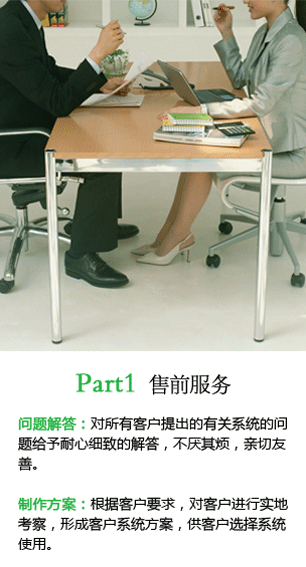 1、日常技术咨询服务:对用户系统维护人员或操作人员提供应用指导服务。 2、软硬件故障处理服务:针对系统出现的软硬件故障,提供电话支持或现场技术支持服务。 3、系统升级服务:如果系统软件有更新的版本,则进行升级,免费培训。 4、系统个性化开发服务:用户有特殊要求,我们可提供个性化开发服务。